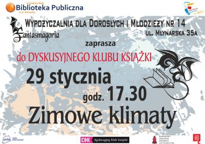 29 stycznia o godz. 17.30 zapraszamy do Wypożyczalni dla Dorosłych i Młodzieży nr 14 przy ul. Młynarskiej 35a na cykliczne spotkanie Dyskusyjnego Klubu Książki dla fanów literatury fantastycznej, ale nie tylko!