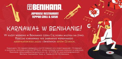 Japońska restauracja Benihana przygotowała wyjątkową odsłonę karnawału w wysublimowanym, jazzowym stylu Muzyka na żywo będzie towarzyszyła karnawałowym sobotom w Benihanie.